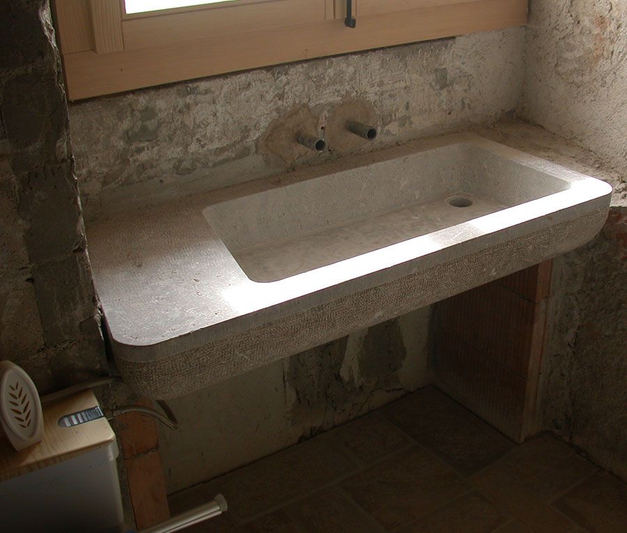Nous réalisons des bassins taillés dans des blocs de pierres massifs pour des éviers cuisines, lavabos de salle de bains, fontaines ainsi que des tops de douches.